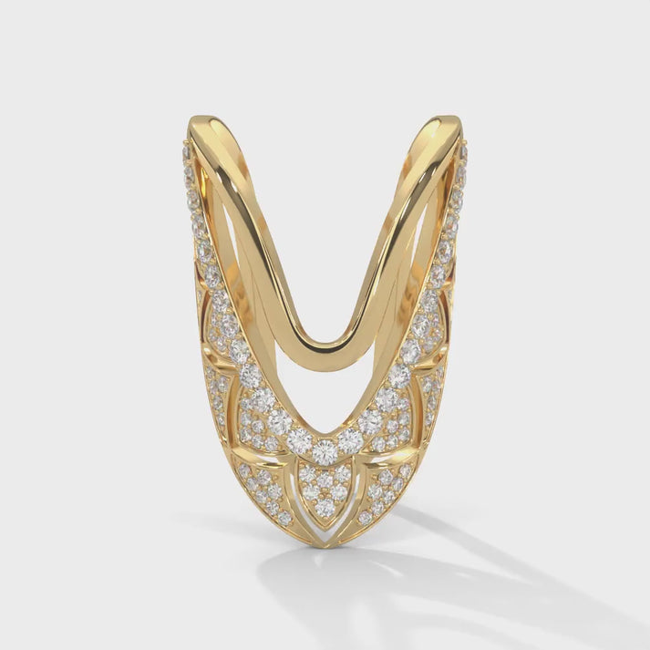 The Aahana Vanaki Ring showcases the epitome of luxury and craftsmanship. Featuring diamonds of VS-SI clarity, the ring radiates brilliance with its exceptional sparkle. The diamonds are gradedFG for color, ensuring a near-colorless appearance that enhances their natural brilliance.