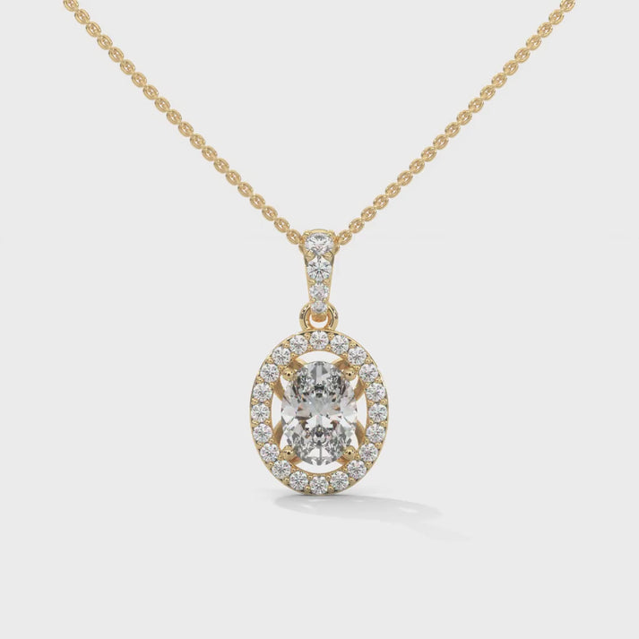 The centre diamond, weighing 0.75 CT, is the highlight of this pendant, surrounded by additional diamonds that add to its sparkle and appeal. Whether worn for a formal occasion or as a refined touch to an everyday ensemble, the Classic Oval Diamond Pendant offers timeless beauty and an undeniable allure. This piece is perfect for those seeking a blend of classic design with a modern, radiant twist. Without Chain