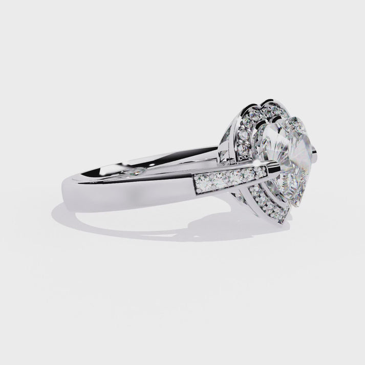 Dual Toned Heart Halo Lab Grown Diamond OR Moissanite Ring