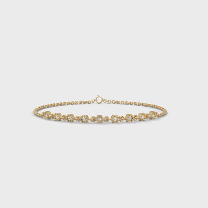 The bracelet showcases diamonds with VS-SI clarity, ensuring each stone is of exceptional quality with an unmatched brilliance. The diamonds are graded FG in color, offering a near-colorless radiance that enhances their sparkle, adding depth and sophistication to the overall design. Carefully selected round cuts further amplify the light reflection, giving the bracelet its mesmerizing shine.