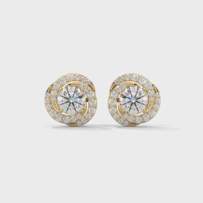Spiral Stud Halo Lab Grown Diamond OR Moissanite Earrings