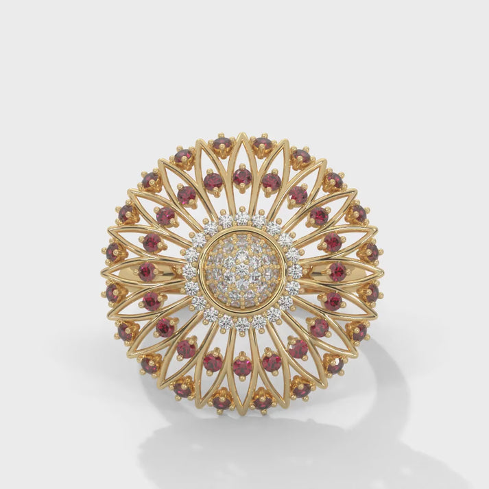 With a total diamond weight of 0.77 CT, the Sunflower Daisy Ring beautifully blends elegance with charm. Its nature-inspired sunflower and daisy motif adds a whimsical touch, making it a perfect choice for those who appreciate both floral elegance and fine craftsmanship. Ideal for those seeking a unique yet timeless design, this ring captures the essence of beauty and grace.